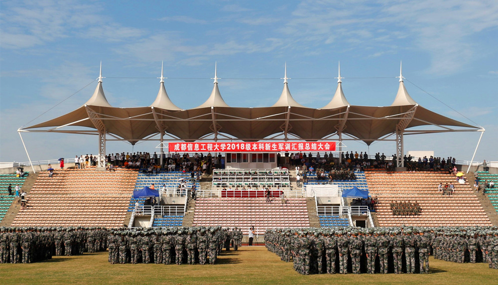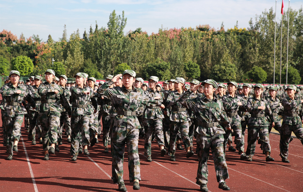 汇报表演随着《分列式进行曲》正式开始。分列式方阵队伍军姿威武、步伐整齐、喊着嘹亮的口号,依次走过检阅台,赢得了在场老师和同学阵阵掌声;巾帼不让须眉的匕首操,彰显着军营之花的激情飞扬和无与伦比的青春魅力;《中国人》手语操中,统一规整的动作展示了新生们朝气蓬勃的青春风采;“三声三相”方阵表演中,新生们拼成了“CHINA”、五角星的样式,用《歌唱祖国》抒发了大家对祖国的热爱;刚劲有力的擒敌拳,扫腿、横踢、侧倒及对抗动作,无不展示着成信学子的自信、果敢、顽强与坚韧……汇演节目精彩纷呈,新生们用热情饱满、斗志昂扬的姿态,展现了锐意进取、乐观自信和奋发向上的青春风采。