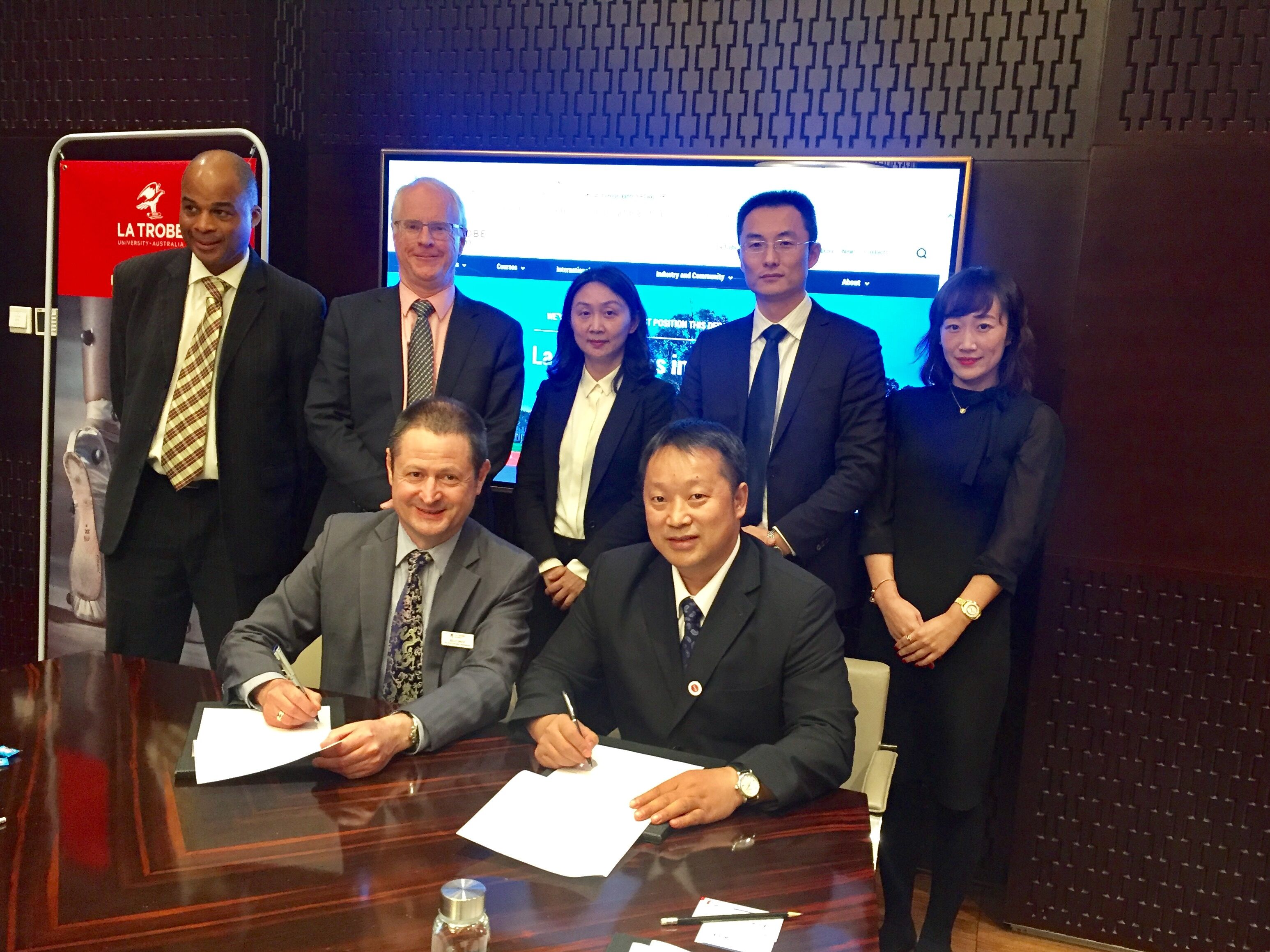 10月10日,学校副校长舒红平和澳大利亚乐卓博大学副校长Kelly Smith先生、Keith Nugent先生一行在北京座谈交流并签署合作谅解备忘录。代表团成员还有国际处主任Nandi Lakshmanan先生、大中华区域总监Giles Jacobs先生。