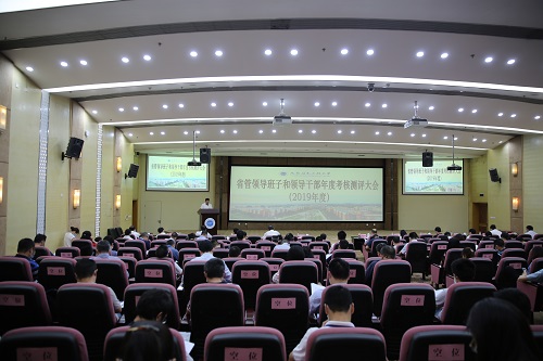 【本网讯】按照省委统一部署,省委组织部于5月21日来校开展2019年度省管领导班子和领导干部年度考核工作,考核测评大会在国际会议厅举行。省委组织部干部五处副处长蔡鸿斌等同志出席了干部考核测评大会。学校中层副职以上干部,职代会、教代会负责人,在校的省、市以上党代表、人大代表、政协委员,民主党派在校负责人,三级以上专业技术职务人员等140余人参加了考核测评大会。会议由党委书记周激流主持。