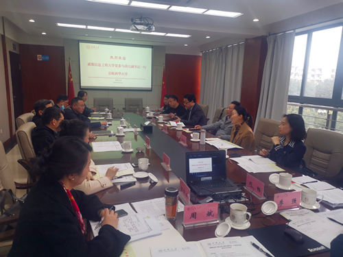 3月17日上午,学校党委副书记马洪江一行与西华大学校领导和相关职能部门就我校建校70周年总结发展大会筹备工作进行交流座谈。西华大学党委副书记王政书,党委常委、宣传部部长山述兰,党政办公室主任黄进,党委学生工作部部长王大清,校友总会办公室主任王丽娟,文学与新闻传播学院党委书记王莉,以及我校党委办公室、校长办公室主任段黔冰,党委学生工作部部长龚晓林、校团委书记丁恒康、校友办公室主任张斌兵等参加了会议。会议由黄进主持。