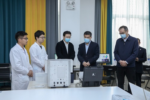 罗强副省长随后来到中国气象局大气探测重点开放实验室,听取了副校长何建新关于实验室基本情况、主要成果、重要项目、未来计划等方面的情况汇报。在气象雷达信号处理研究室和气象雷达仿真与测试室,他认真查看相关器件、系统和设备,详细了解研究技术原理、研发进展和取得成果、产品应用情况和下一步发展方向,并对科研团队取得的创新成果表示肯定与鼓励。